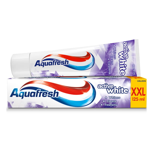 Aquafresh Active White to pasta o formule zaprojektowanej do redukcji przebarwień powierzchniowych przy jednoczesnej ochronie szkliwa dzięki fluorkowi.