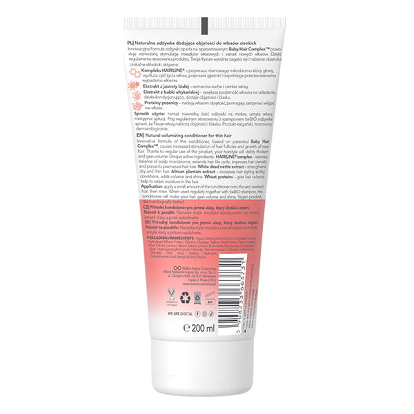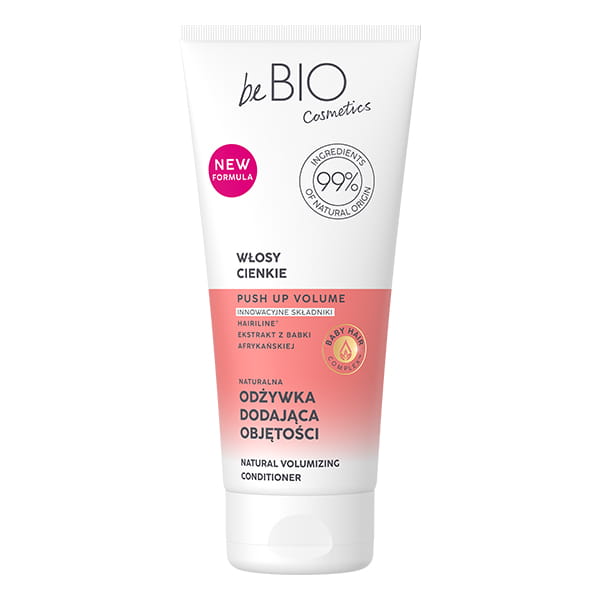 Naturalna odżywka do włosów cienkich dodająca objętości, która zawiera 99% składników pochodzenia naturalnego. Zapewni włosom odżywienie, blask i zdrowy wygląd - Bebio Cosmetics.