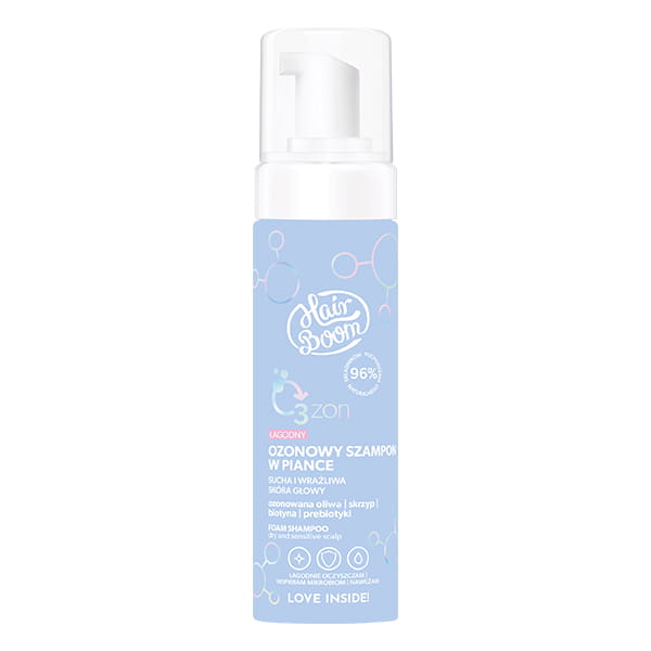 Bielenda Hairboom O3ZON łagodny szampon w piance zapewnia skuteczne, a jednocześnie delikatne oczyszczenie skóry głowy i włosów, przywracając uczucie świeżości bez efektu przesuszenia. Zawiera formułę wzbogaconą ozonowaną oliwą i składnikami pielęgnacyjnymi. Twoje włosy zyskają lekkość, naturalną objętość i zdrowy blask.