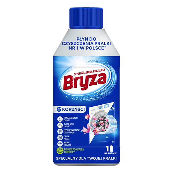 Płyn do czyszczenia pralki kompleksowo wyczyści wnętrze pralki, usuwając przy tym brud, resztki detergentów i inne osady - Bryza.