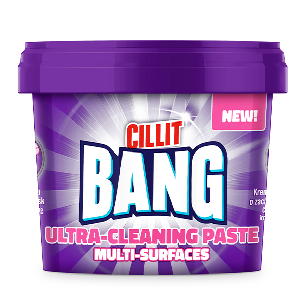 Uniwersalna pasta stworzona do czyszczenia mniejszych trudniejszych plam, które dodatkowo wymagają szorowania. Usuwa do 100% trudnych plam, pozostawia lśniący połysk oraz ma kremową konsystencje o zachwycającym zapachu - Cillit Bang.