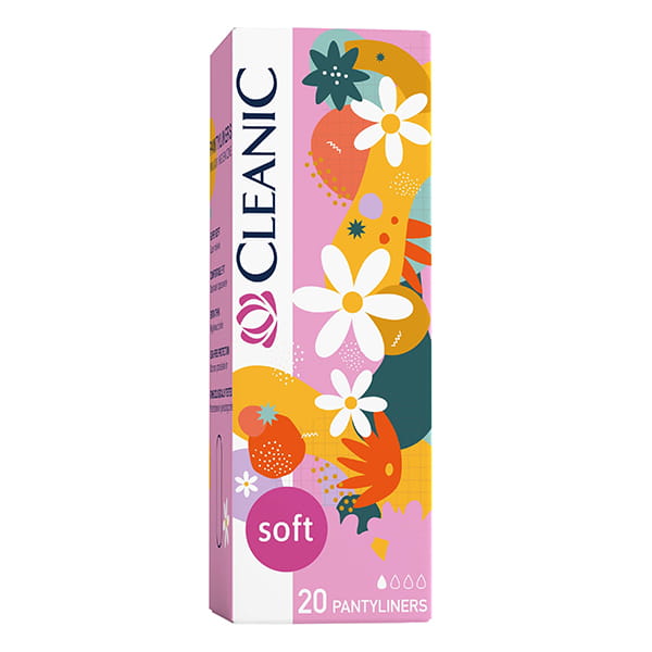 Wkładki higieniczne dla kobiet Cleanic Soft. Super miękkie, doskonale dopasowane a zarazem wyjątkowo cienkie doskonale chronią przed przeciekaniem.
