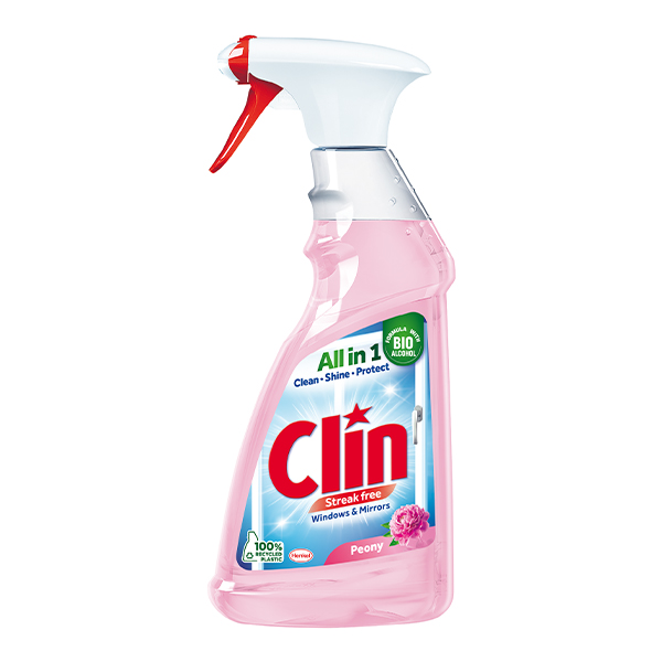 Płyn do mycia okien i powierzchni szklanych z formułą All in 1 oraz naturalnym Bio-Alkoholem. Skutecznie usuwa tłuszcz i zabrudzenia, zapewnia idealny połysk bez smug oraz pomaga chronić powierzchnię przed ponownym osadzaniem się brudu i wody - Płyn do szyb i luster Clin All in 1 Windows & Mirrors - Peony.