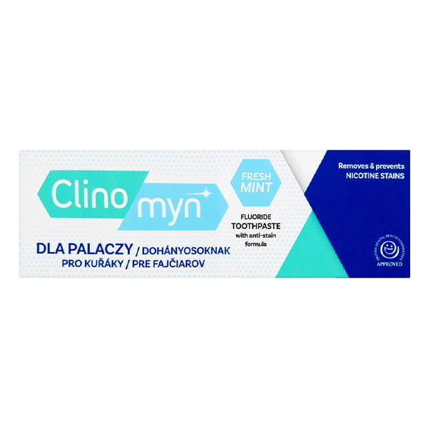 Pasta do zębów dla palaczy, usuwa osad z płytki nazębnej, bogata w wapno, wzmacnia zęby, chroni przed ubytkami - Clinomyn.