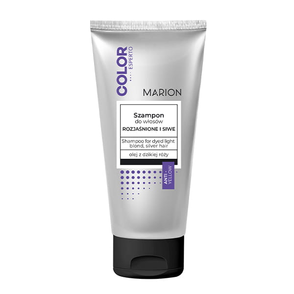 Szampon do włosów rozjaśnionych i siwych. Nadaje piękny połysk oraz wspaniały platynowy odcień, neutralizuje żółte tony, tym samym ochładza kolor - Marion Color Esperto.