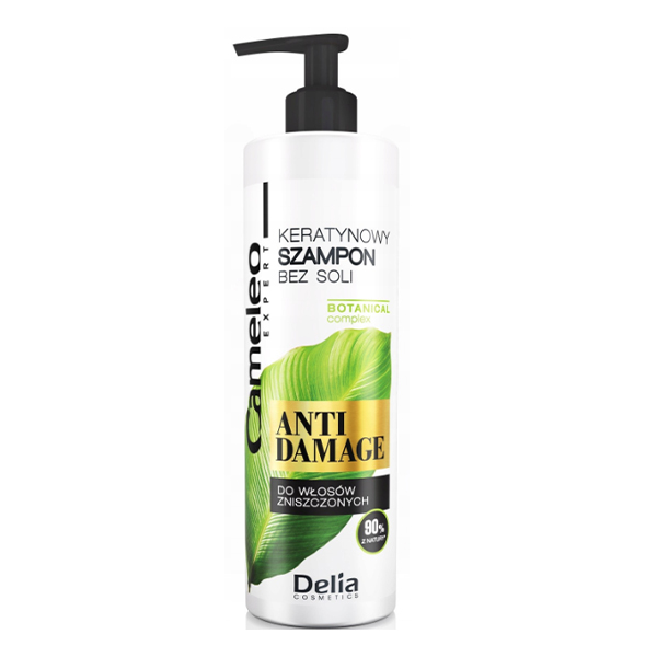 Regenerujący szampon z keratyną i olejem arganowym, który odbudowuje zniszczone włosy, wygładza je i przywraca im zdrowy blask. Odkryj intensywną pielęgnację już od pierwszego mycia - Delia Cameleo Anti‑Damage.