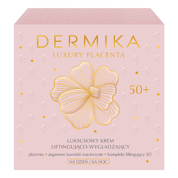 Luksusowy krem liftingująco-wygładzający 50+ Dermika Luxury Placenta dla wymagającej skóry dojrzałej po pięćdziesiątym roku życia, efektywnie liftinguje, napina i regeneruje naskórek.