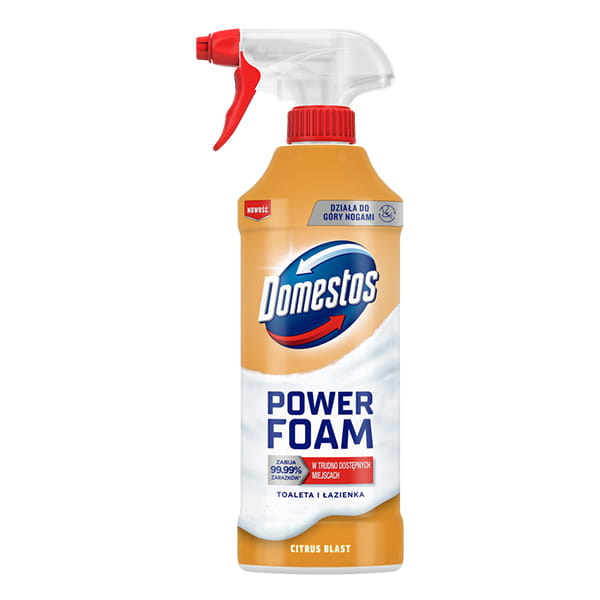 Domestos Power Foam to aktywna piana przywiera mocniej i na dłużej do czyszczonej powierzchni, czyszcząc dzięki temu lepiej i zabijając 99,99% bakterii i wirusów.
