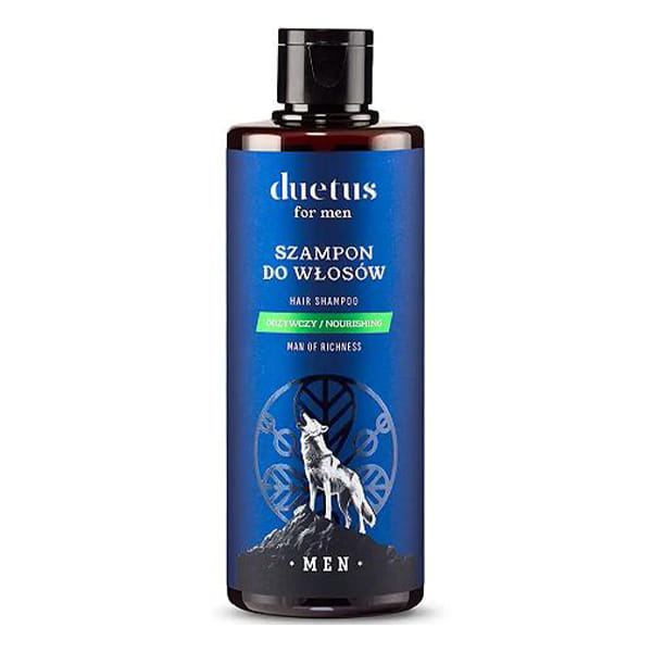 Głęboko odżywiający szampon dla mężczyzn, który wzmacnia włosy, nawilża skórę głowy i przywraca fryzurze zdrowy, pełen energii wygląd. Wypróbuj jego naturalną, męską formułę - Duetus For Men.