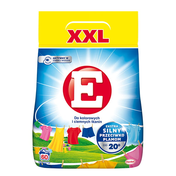 Skuteczny proszek do prania usuwający plamy już od 20°C, chroniący kolor i odświeżający tkaniny. Dodaj do koszyka i pierz oszczędnie oraz skutecznie - E proszek do prania kolorów.