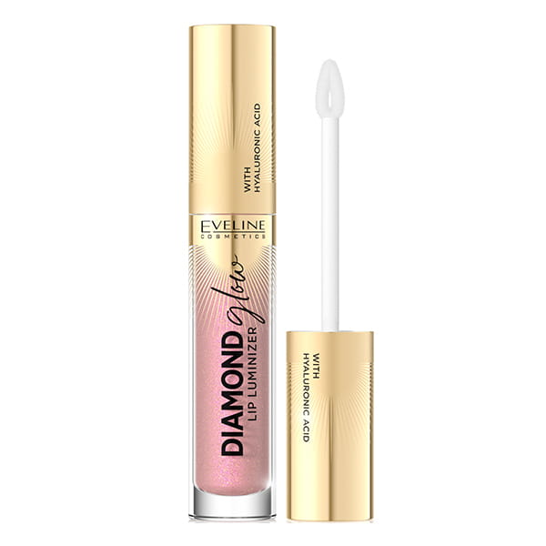 Błyszczyk transparentny z kwasem hialuronowym i witaminą E o zapachu karmelowym, zapewnia niezwykły efekt lśnienia - Eveline Diamond Glow.