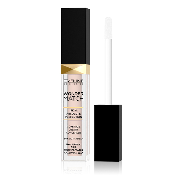 Eveline Wonder Match kremowy, kryjący korektor, który dopasowuje się do odcienia skóry i ma działanie pielęgnujące. Receptura zawiera Kwas hialuronowy oraz wodę termalną, które utrzymują nawilżenie skóry przez cały dzień.