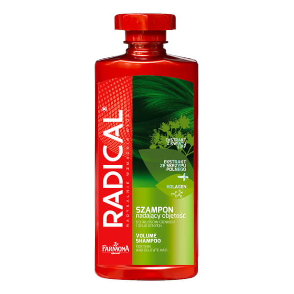Szampon nadający objętość do włosów cienkich i delikatnych o potrójnej sile działania. Nadaje długotrwałą objętość, a przy systematycznym stosowaniu zwiększa grubość włosów i chroni przed uszkodzeniami - Farmona Radical.
