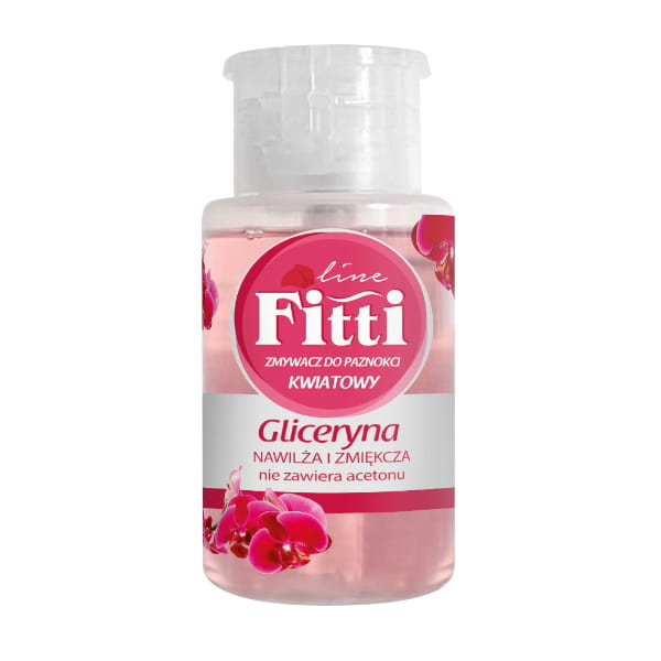Bezacetonowy zmywacz do paznokci z zawartością gliceryny, która doskonale wpływa na kondycję paznokci. Piękny kwiatowy zapach - Fitti Line.