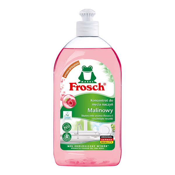 Płyn do mycia naczyń z naturalnym ekstraktem z malin. Doskonale usuwa tłuszcz, brud i pozostawia naczynia lśniące - Frosch.