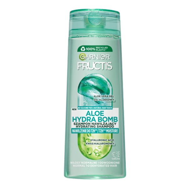 Szampon zawiera wyjątkowe połączenie białek z cytryny, witamin B3 i B6, ekstraktów z owoców i roślin o udowodnionej skuteczności, aby zaoferować widocznie zdrowsze, mocniejsze włosy - Fructis Hydra Bomb.