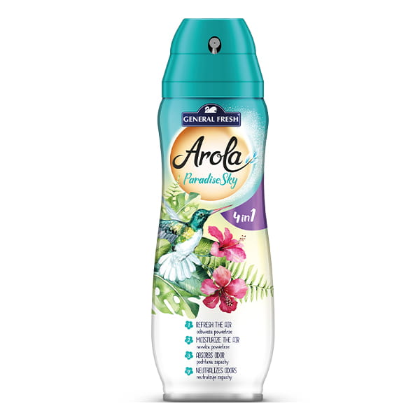 Odświeżacz powietrza w aerozolu 4w1 o zapachu owoców śródziemnomorskich. Skutecznie neutralizuje brzydkie zapachy - Arola Paradise Sky.