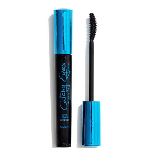 Wodoodporny tusz do rzęs sprawia, że rzęsy są podkręcone, z efektem „kocich oczu”, Silikonowa, wygięta szczoteczka umożliwia łatwą aplikację i delikatnie rozdziela rzęsy, jego wodoodporna formuła zapobiega rozmazywaniu się tuszu bez względu na pogodę - Gosh Catchy Eyes.