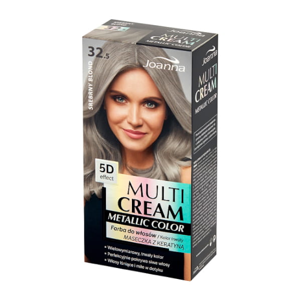 Trwała farba do włosów dająca efekt 3D oraz perfekcyjne pokrycie siwych włosów - Joanna Multi Cream Metallic Color Srebrny Blond 32.5.