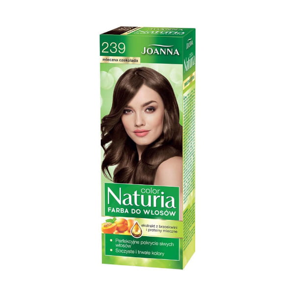 Trwała farba do włosów zapewniająca atrakcyjny i głęboki odcień oraz perfekcyjne pokrycie siwych włosów - Joanna Naturia Color Mleczna Czekolada 239.
