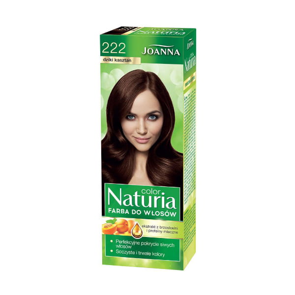 Trwała farba do włosów zapewniająca atrakcyjny i głęboki odcień oraz perfekcyjne pokrycie siwych włosów - Joanna Naturia Color Dziki Kasztan 222.