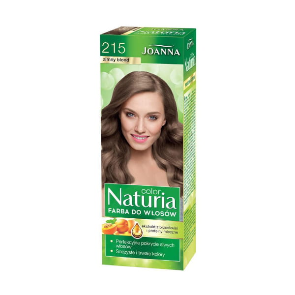 Trwała farba do włosów zapewniająca atrakcyjny i głęboki odcień oraz perfekcyjne pokrycie siwych włosów - Joanna Naturia Color Zimny Blond 215.