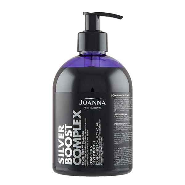Profesjonalny szampon z kompleksem Silver Boost, który neutralizuje żółte tony, podkreśla chłodny odcień włosów i nadaje im srebrzysty, lśniący refleks. Idealny do włosów blond, siwych i rozjaśnianych. Odkryj intensywny srebrzysty blask już po kilku użyciach - Joanna Professional Silver Color Boost Complex.