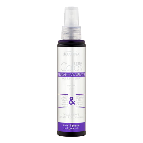 Płukanka do włosów w sprayu srebrna, niweluje żółty refleks włosów - Joanna Ultra Color Silver.