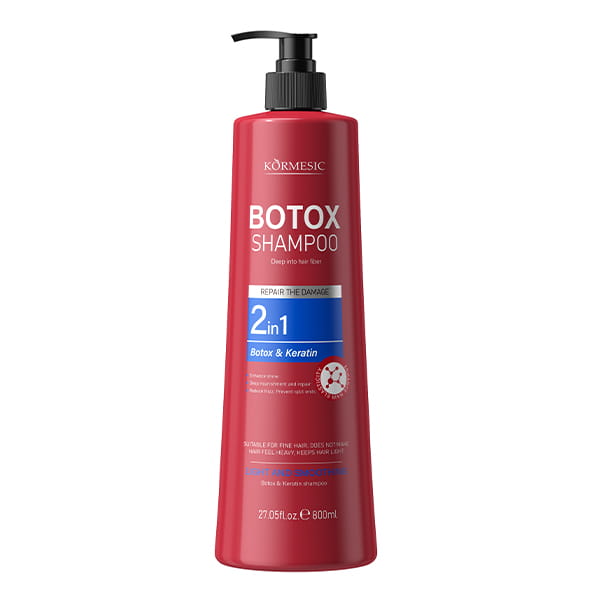 Regenerujący szampon 2w1 z keratyną i kompleksem botox‑like, który odbudowuje, wygładza i wzmacnia włosy, przywracając im miękkość, blask i zdrowy wygląd już po pierwszym użyciu. Odkryj szampon, który przywraca im gładkość i zdrowy blask - Kormesic Professional Botox & Keratin 2w1.