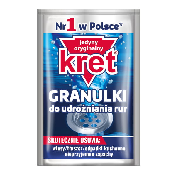 Produkt do chemicznego udrożniania rur i syfonów w instalacjach kanalizacyjnych - Kret Granulki.