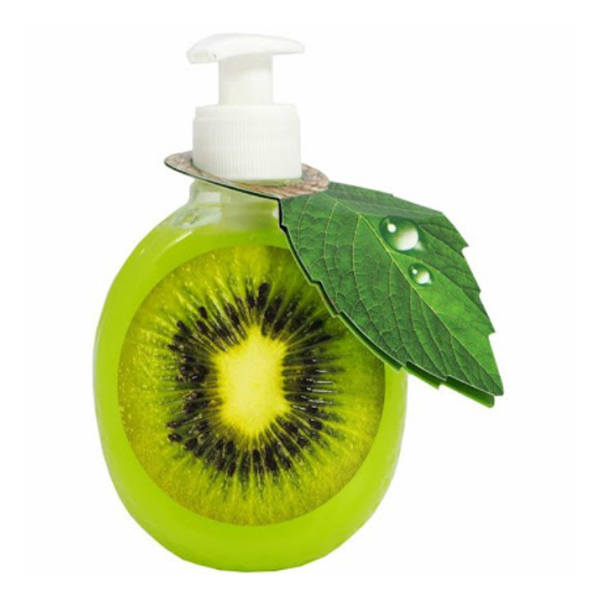 Soczyste mydło w płynie o zapachu kiwi delikatnie oczyszcza, tworzy kremową pianę i pozostawia dłonie miękkie - Lara Kiwi.