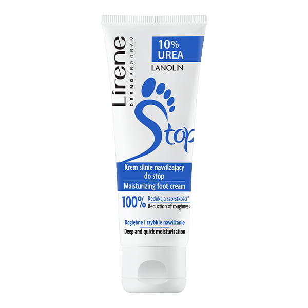 Krem do stóp z 10% mocznikiem nawilża, zmiękcza i chroni przed dalszym przesuszeniem, pozostawiając skórę miękką i jedwabiście gładką. Idealny do codziennej pielęgnacji suchych stóp - Lirene.