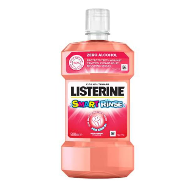 Listerine Smart Rinse zawiera fluorek, który wzmacnia zęby i ogranicza powstawanie ubytków aż do 40% skuteczniej niż samo szczotkowanie. Usuwa szkodliwe bakterie, główną przyczynę powstawania płytki nazębnej i chorób dziąseł.