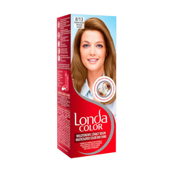 Kremowa farba do trwałej koloryzacji włosów. Formuła odżywczego balsamu zawiera olej kokosowy, wygładza włosy i nadaje im połysk po farbowaniu. Stworzona dla kobiet z pierwszymi oznakami siwych włosów - Londa Color Średni Blond 8/13.