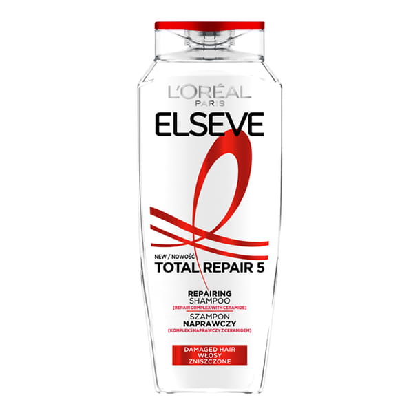 Szampon Elseve Total Repair 5 wzbogacony w 2% kompleksem odbudowującym z Keratin XS intensywnie regeneruje włosy i zapewnia 5 rezultatów dla zniszczonych włosów: odporność, witalność, połysk, jedwabistość i miękkość.