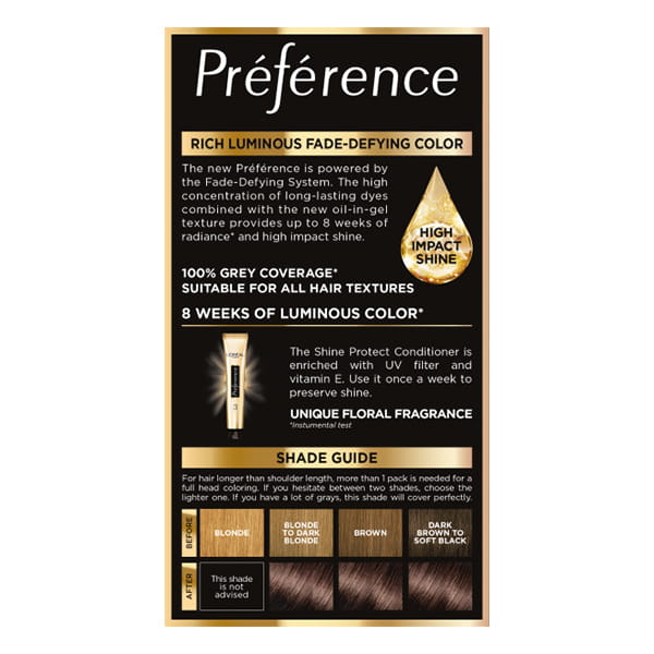 Sekret intensywnego połysku Preference z aktywatorem połysku zawiera opatentowane barwniki wysokiej odporności, które mają większą objętość w porównaniu z tradycyjnymi barwnikami koloryzującymi.