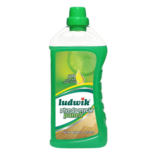 Płyn do mycia i pielęgnacji paneli podłogowych i ściennych, nie pozostawia smug dodatkowo zapobiega ponownemu osadzaniu się kurzu na powierzchniach - Ludwik Płyn Do Paneli.