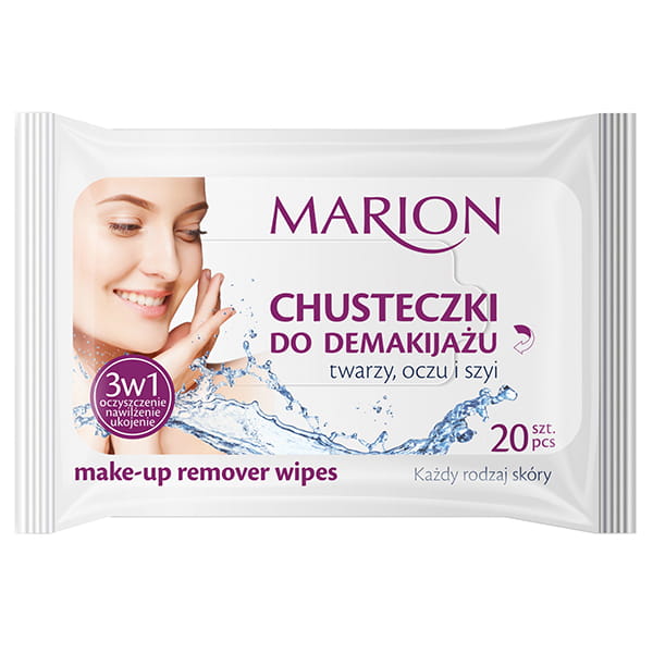 Chusteczki do demakijażu z wyciągiem z aloesu i witaminą E do każdego rodzaju skóry - Marion Make-up Remover Wipes.
