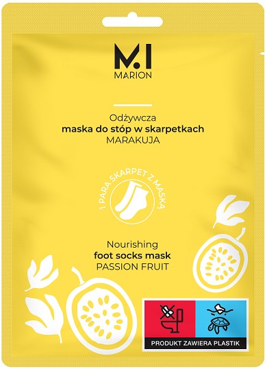 Intensywnie odżywcza maska do stóp w wygodnych skarpetkach z ekstraktem z marakui - nawilża, regeneruje i wygładza skórę w 20–30 minut. Poczuj ulgę dla zmęczonych stóp - Marion.