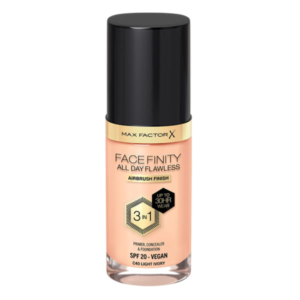 Wielofunkcyjny podkład, który łączy w sobie właściwości bazy, podkładu i korektora. Zapewnia długotrwałe krycie oraz matowe wykończenie. Pomimo wysokiego poziomu krycia, podkład ma lekką konsystencję, która nie zatyka porów i zapewnia naturalny wygląd bez efektu maski - Max Factor Facefinity All Day Flawless 3W1.