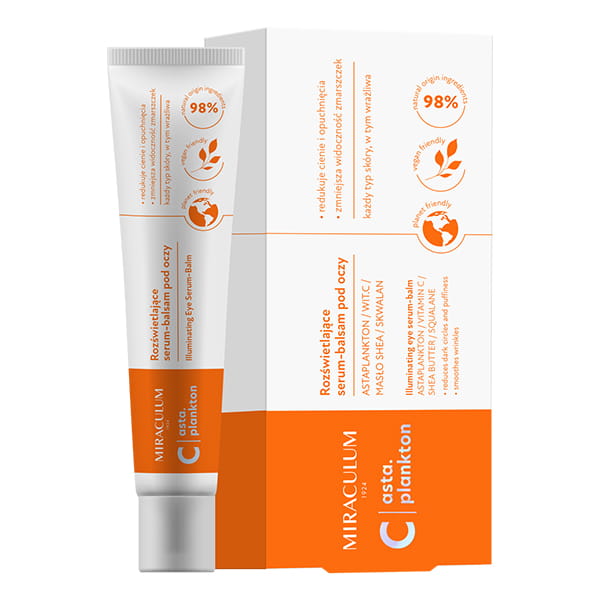 Serum pod oczy redukujące cienie i opuchnięcie. Spłyca i wygładza zmarszczki z masłem shea, witaminą C i skwalanem - Miraculum Asta Plankton C.