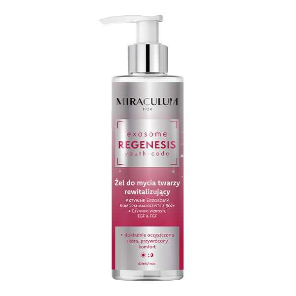 Żel do mycia twarzy to formuła oczyszczająca stworzona z myślą o skórze potrzebującej odnowy: łączy delikatne środki myjące z aktywnymi składnikami regeneracyjnymi, by oczyszczać bez przesuszania i przygotować skórę do dalszej pielęgnacji - Miraculum Exosome Regenesis.