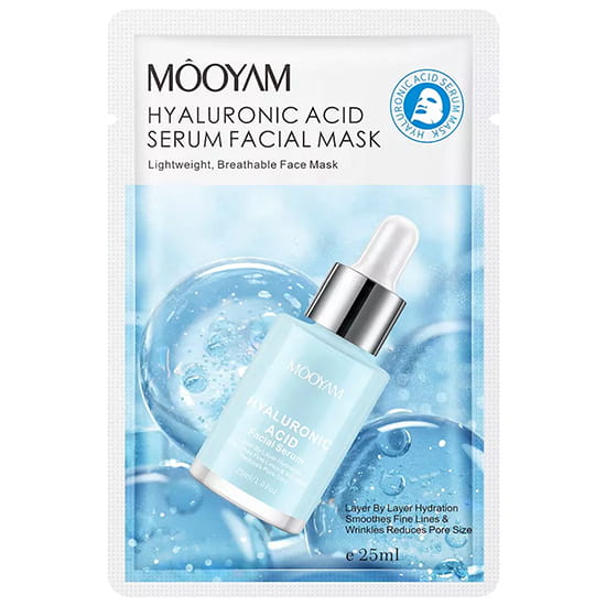 Mooyam Hyaluronic Acid to maseczka w płachcie z kwasem hialuronowym, przeznaczona dla każdego rodzaju skóry.