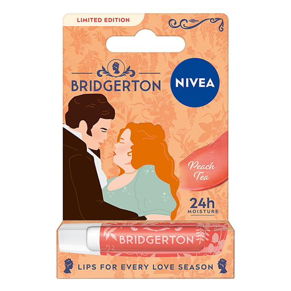 Pielęgnująca pomadka do ust NIVEA Bridgerton Penelope & Colin w zapachu Peach Tea to limitowana edycja łącząca klasyczną ochronę NIVEA z subtelną, owocową nutą.