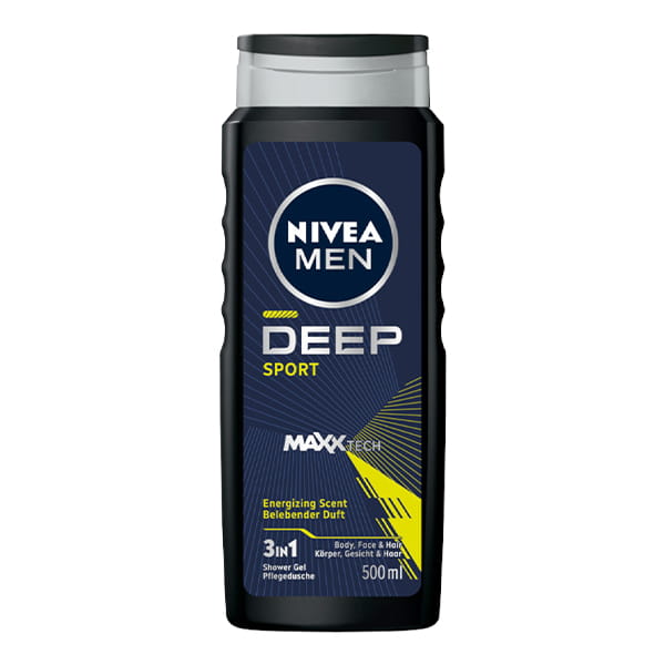 Zawsze odczuwasz adrenalinę związaną z aktywnym stylem życia? Wypróbuj nowość - Żel pod prysznic 3w1 do ciała, twarzy i włosów Nivea Men Deep Sport. Formuła Maxxtech o energetyzującym zapachu została zaprojektowana tak, aby zapewnić natychmiastowy zastrzyk świeżości i zachować witalność nawet po uprawianiu sportu.