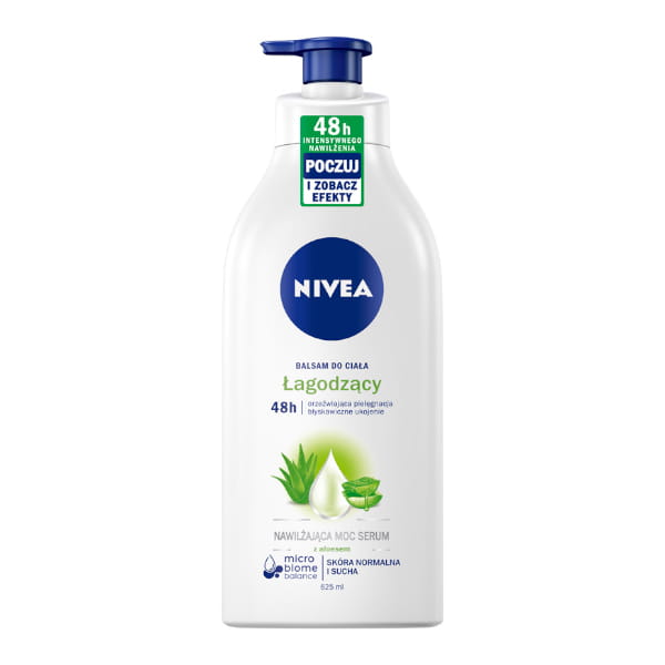 Łagodzący balsam do ciała nadaje skórze zdrowy wygląd oraz intensywnie ją nawilża przez 48 godzin, natychmiastowo się wchłania i zapewnia skórze odświeżenie, ukojenie oraz przyjemny zapach - Nivea Nawilżająca Moc Serum.