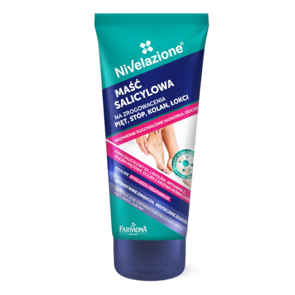 Jeśli skóra twoich stóp, kolan lub łokci jest bardzo sucha, stwardniała i szorstka, doświadczasz nadmiernego rogowacenia lub łuszczenia naskórka i powstawania odcisków, poszukujesz produktu, który zapewnia ekspresowe działanie i natychmiastowy efekt, sięgnij po skuteczne rozwiązanie: naszą regenerującą maść salicylową Nivelazione z właściwościami intensywnie zmiękczającymi i wygładzającymi