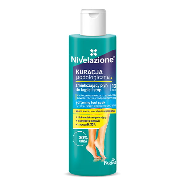 Zmiękczający płyn do kąpieli stóp to specjalistyczny produkt dedykowany pielęgnacji suchej, szorstkiej i zniszczonej skóry stóp - Nivelazione.