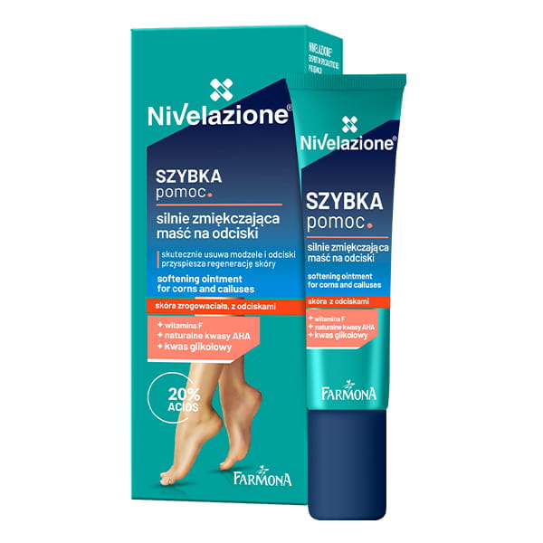 Silnie zmiękczająca maść na odciski to intensywnie działający preparat przeznaczony do pielęgnacji skóry z odciskami i modzelami. Jego formuła została stworzona, aby szybko i skutecznie zmiękczyć zrogowacenia, przyspieszyć regenerację skóry oraz zapobiegać powstawaniu nowych zmian - Nivelazione.