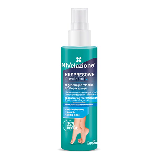 Ekspresowe nawilżenie i regeneracja suchych, zniszczonych stóp w sprayu. Spryskaj, wmasuj i poczuj ulgę - Nivelazione.